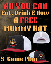 All-you-can-eat and all-you-can-drink water/soda for 2 hours during games (Menu consists of hot dog, hamburger, brat, chicken sandwich, chips)